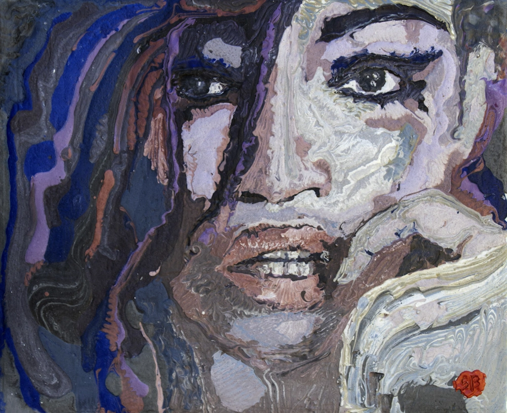 Dipinto materico a rilievo ricco di effetti di colore particolari ottenuti modellando con le mani una speciale miscela a base di gesso.