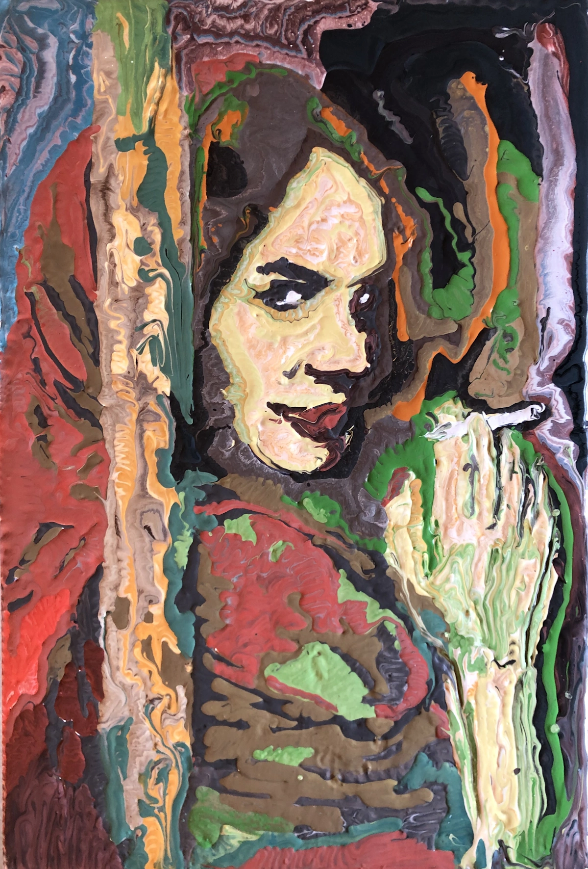 Dipinto materico a rilievo ricco di effetti di colore particolari ottenuti modellando con le mani una speciale miscela a base di gesso.